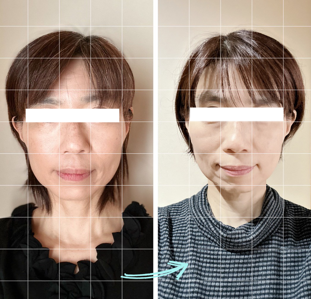 kogao salon lienでは、「一度の施術でも変化がわかる!」と嬉しいお声を多くいただいています。 こちらのページでは、実際にご来店いただいたお客様のビフォーアフターをご紹介。 小顔矯正+リンパ洗浄の施術によって、どのような変化が現れたのかをご覧いただけます。 ※お写真はすべて掲載許可をいただいたものです。効果には個人差がございます。